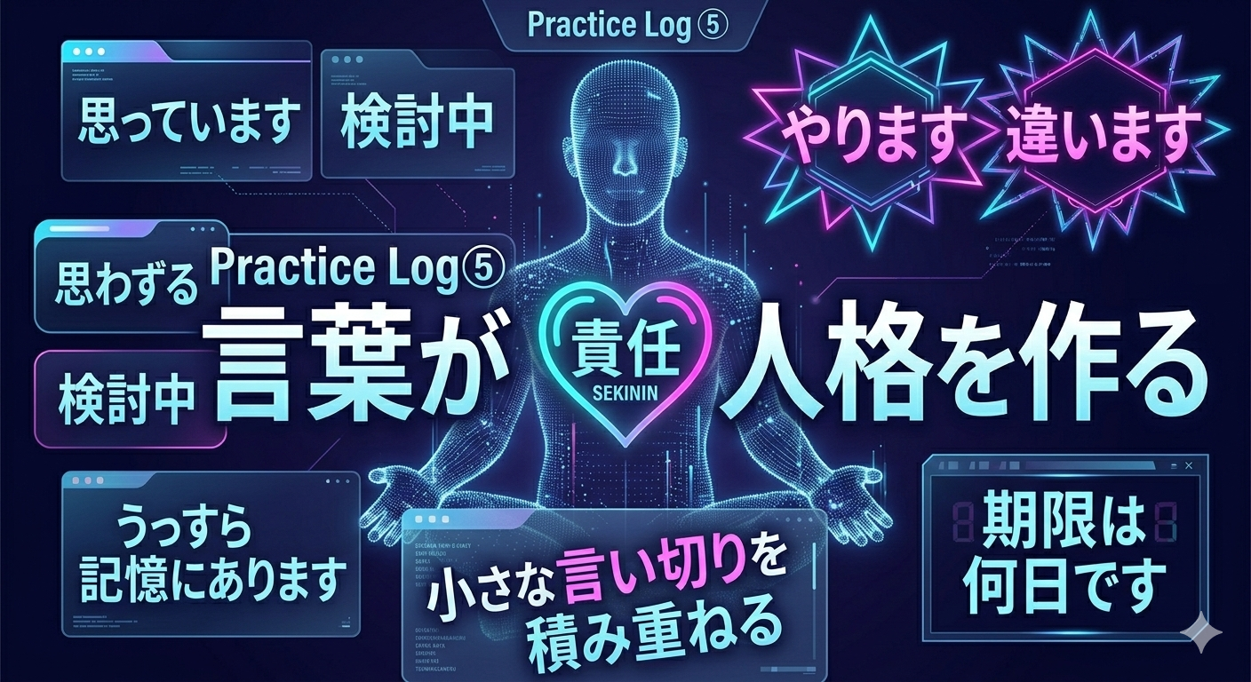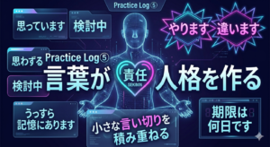 人格は一朝一夕には変わらないが、言葉は今日から変えられる。かもしれませんを現時点ではこうですに置き換える。やってみますを何日までにやりますにする。小さな言い切りを積み重ねると、自分の中の覚悟も少しずつ形を持つ。